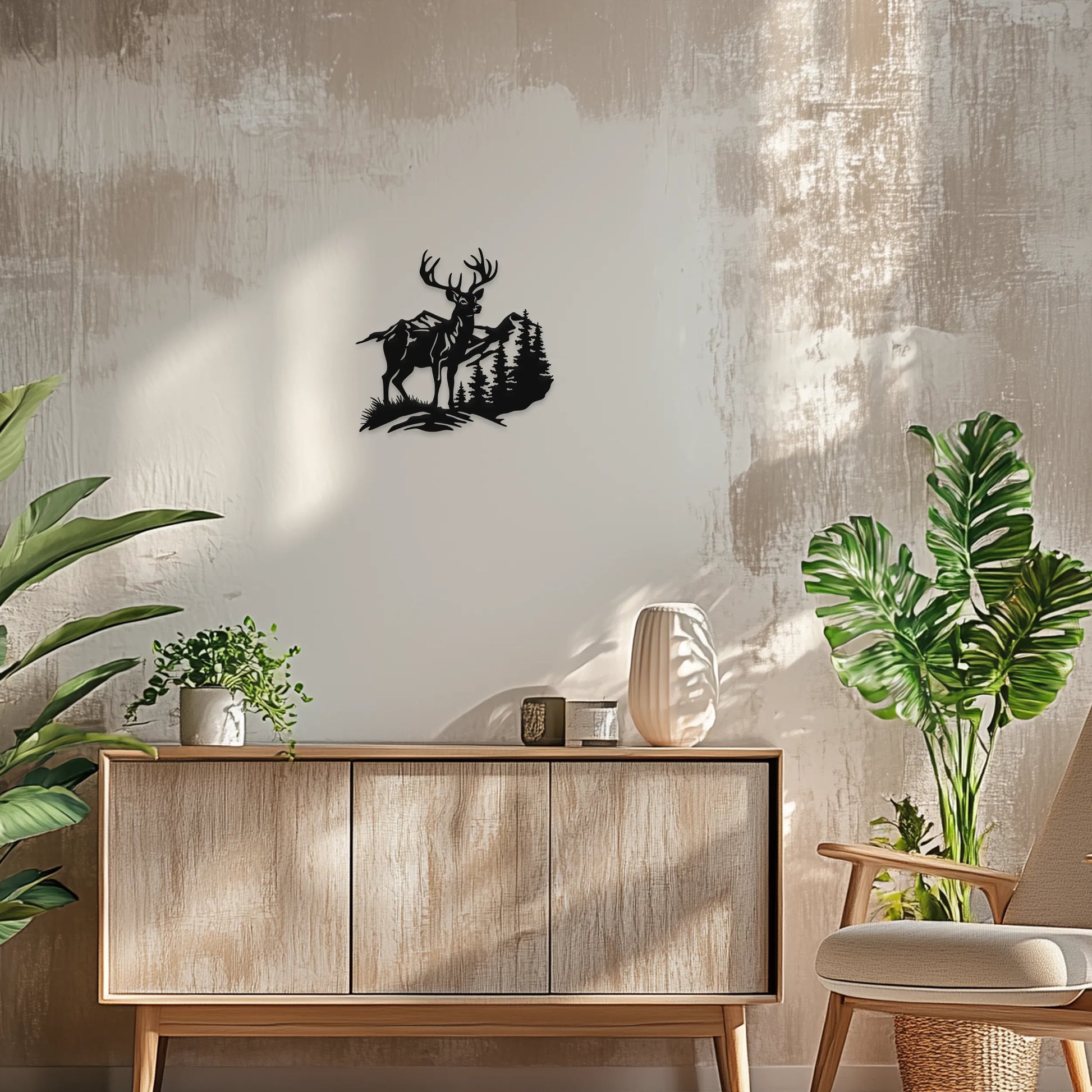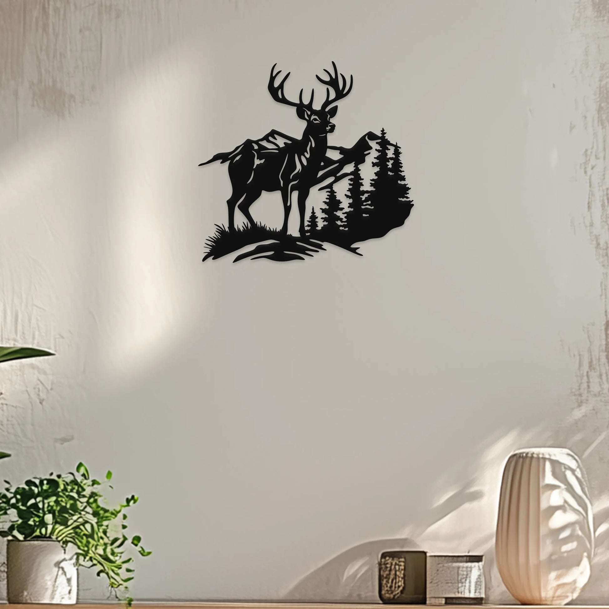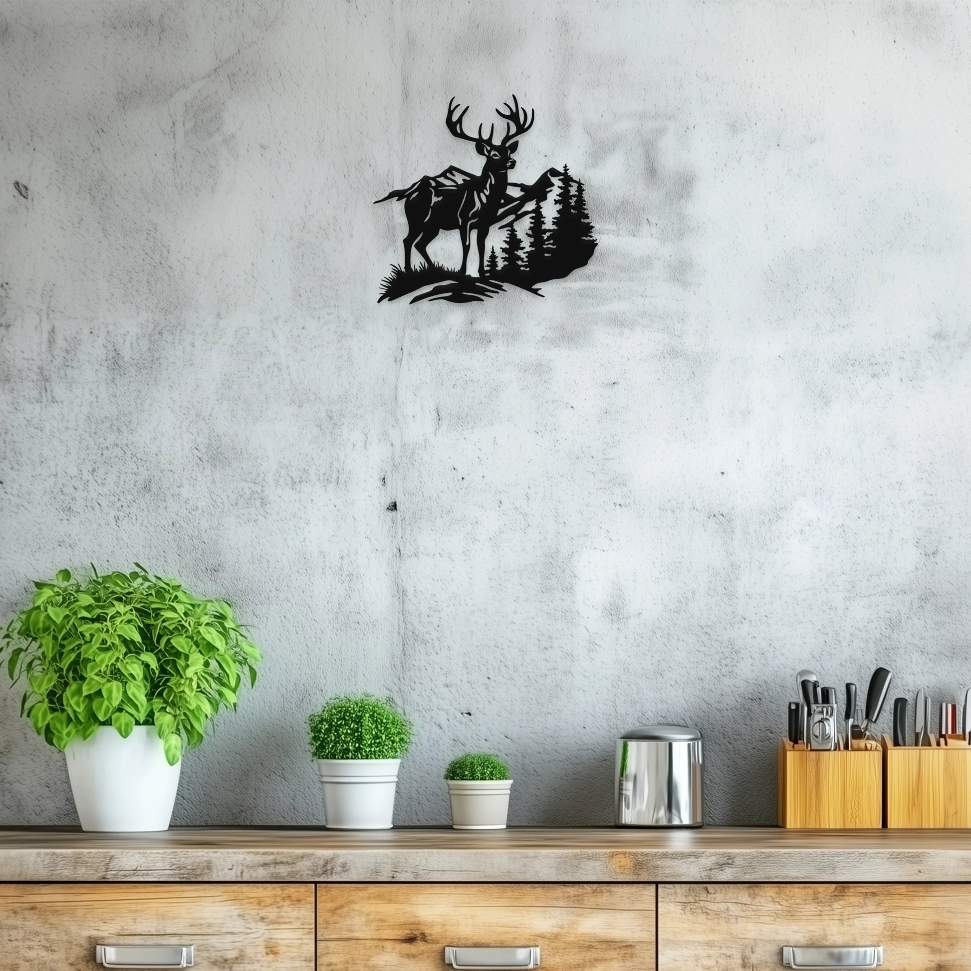 Jeleň s výhľadom, horské volanie - Drevená dekorácia na stenu